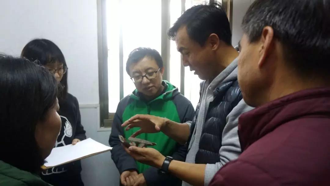 上午11时,校车缓缓驶入实习基地,在张敬雷老师的带领下,诸位领导依次参观了基地库房、陈列室、修复室、多媒体及会议室、生活区等。在陈列室,张敬雷老师展示讲解了本次实习员工发掘出的器物和标本:青铜削刀、原始瓷杯、陶豆、骨质带钩、宋代瓷碗等。