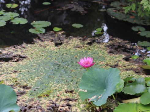 在距离周恩来故居约两华里的地方,是周恩来纪念馆,也是我们参观的第二个景点。斯人已逝,丰碑永存。纪念馆坐落在淮安北门外夹城内桃花垠的一个三面环水的湖心半岛上,整个建筑造型庄严肃穆,形式朴实典雅,既有传统的民族风格,又有现代建筑特色。拾级而上,步入展厅,迎面耸立着一座3米高的周恩来铜像,展现着总理的伟岸风采。站在纪念馆的顶层,俯瞰全景,我们看到了由纪念岛和三个人工湖构成的汉字“忠”字形,独具匠心。行于道上,凉风习习,醉人的绿与晶莹的湖映入眼帘,小湖里,黑天鹅、锦鲤在自由地活动,使人陶醉。