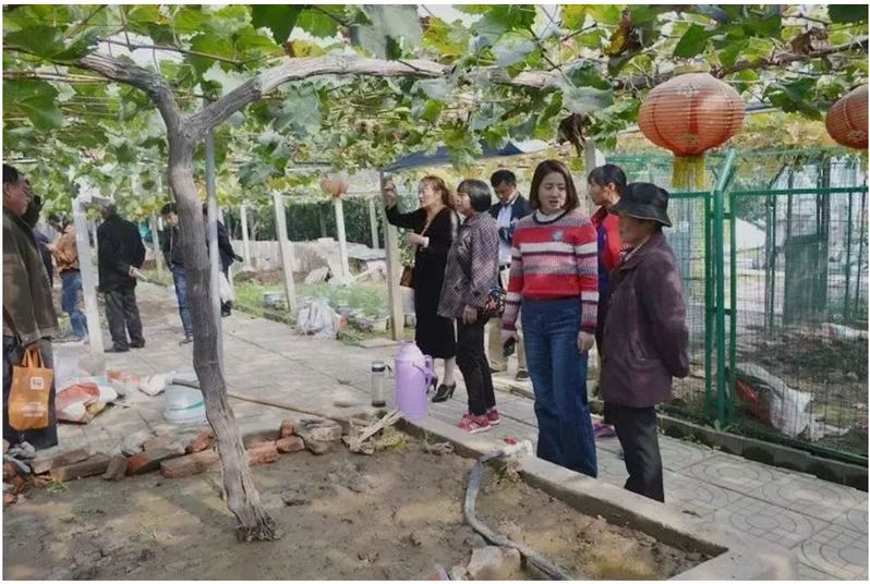 在八卦洲葡萄种植扶贫基地之一的缘派合作社,大家不仅学习了葡萄种植技术,还与葡萄种植户面对面交谈,就葡萄基地建设状况、葡萄种类、葡萄产量、葡萄种植技术等情况进行了解与咨询,并现场观看农户如何培育、维护葡萄树,吸取经验为马渡村“阳光玫瑰”葡萄种植计划提供思路。