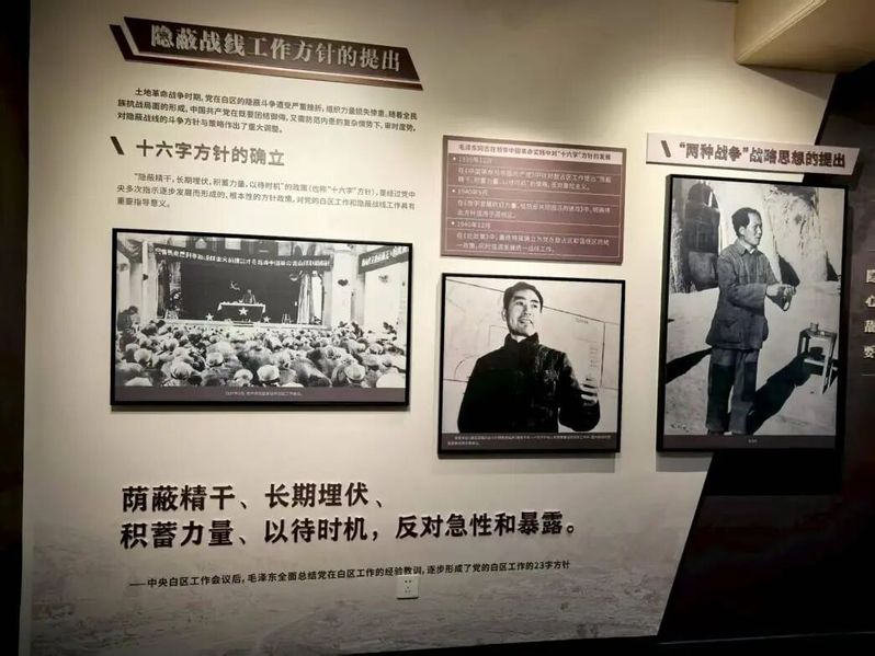 展览分为“抗战时期党的隐蔽斗争方针与专门机构”“推动建立和维护抗日民族统一战线”“获取日伪战略性内幕性情报”以及“保卫延安与抗日根据地建设”四个部分。通过展出的200余张珍贵历史图片及多部影像资料,配合生动的解说文字,立体呈现了党的隐蔽战线在中国人民抗日战争和世界反法西斯战争赢得伟大胜利进程中所发挥的不可替代作用,深切缅怀隐蔽战线战士“无名无我”的崇高信念与不朽功勋。