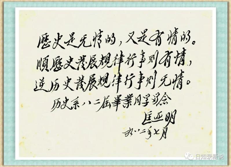 匡董事长的题词,因当时复印条件有限,就交请一名南京籍同学送照相馆洗印成照片,分发给各位同学。题词原件由一位同学保管了许多年,后来送到了南大校史馆收藏。真是得其所哉!我为此而高兴。于是我也想,在恰当的时候,一定将匡董事长写给我的信也送交校史馆,以与题词合璧,见证匡董事长与南大历史系78级同学的一段佳话。