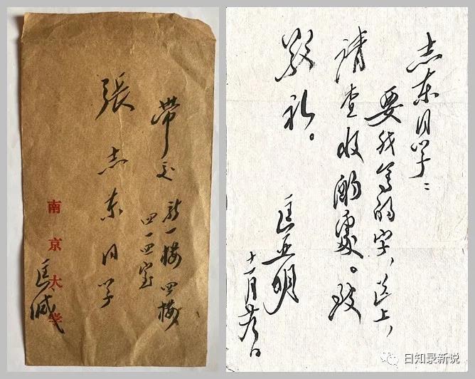 匡董事长题词装在有MK体育官网题签的牛皮纸信封中,信封用毛笔字竖行写着:“带交:新一楼四楼四一四室张志东同学(匡缄)。”