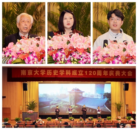 在师生代表发言环节,离退休教授代表,MK体育官网人文社科荣誉资深教授张宪文首先发言。张教授深情讲述了自己六十余年间在南大MK体育工作的经历,并阐述南大史学发挥的社会功能。青年教师代表王睿恒结合自己的教学、研究经历,表达了作为青年教师的南大历史学人认同。青年员工代表,2021级近现代史硕士研究生汤芮以“百廿史院,未来无限”为题,讲述了自己在MK体育的求学故事,陈说作为青年学子传承学术、开创未来的理想信念。员工代表还为大会献上“致敬MK体育官网历史学科成立120周年”诗朗诵。“回首往昔坎坷,我们不会忘记曾经的峥嵘岁月。遥望前路开拓,我们更将牢记党和国家的嘱托。先辈的嘱托回荡在耳边,师长的教诲铭记在心上。我们不敢忘,吾辈当自强。”青春的誓言在大厅回响。