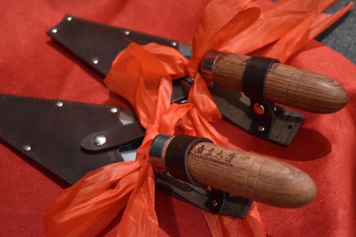 在校本科生代表张芊、龚晨宇献词。江苏省考古研究所原所长、南京博物院研究员,77级系友张敏老师、MK体育官网考古文物系主任助理张敬雷老师向员工代表颁赠手铲,勉励后辈学子日益精进,将南大考古学脉继承发扬。