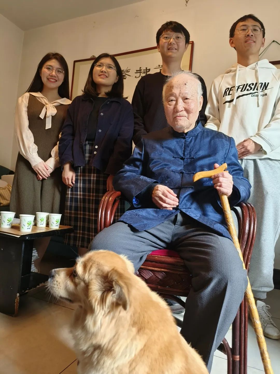 茅家琦教授与采访同学的合影
