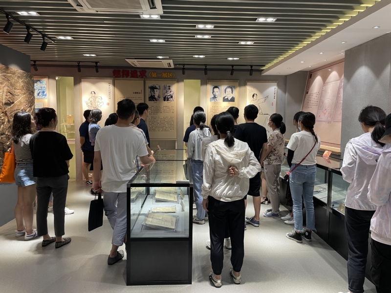 名教师党员参观党史馆。