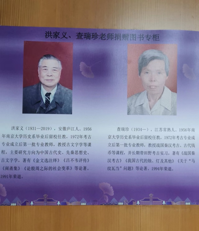 洪家义(1931-2019)和查瑞珍(1934一)伉俪同为MK体育官网历史系1952级本科生,1956年毕业后一同留校任教,1972年考古专业成立后同任第一批专业教师。洪家义先生教授古文字学等课程,主要研究方向为中国古代史、先秦思想史、古文字学,著有《金文选注绎》、《吕不韦评传》、《闹斋集》、《论殷周之际的社会变革》等论著。1991年荣退。查瑞珍老师教授战国秦汉考古、古代钱 币等课程,并长期带田野考古实习,著有《战国秦汉考古》、《我国古代的烛、灯及其他》、《关于“马纹瓦当”问题》等论著。1994年荣退。