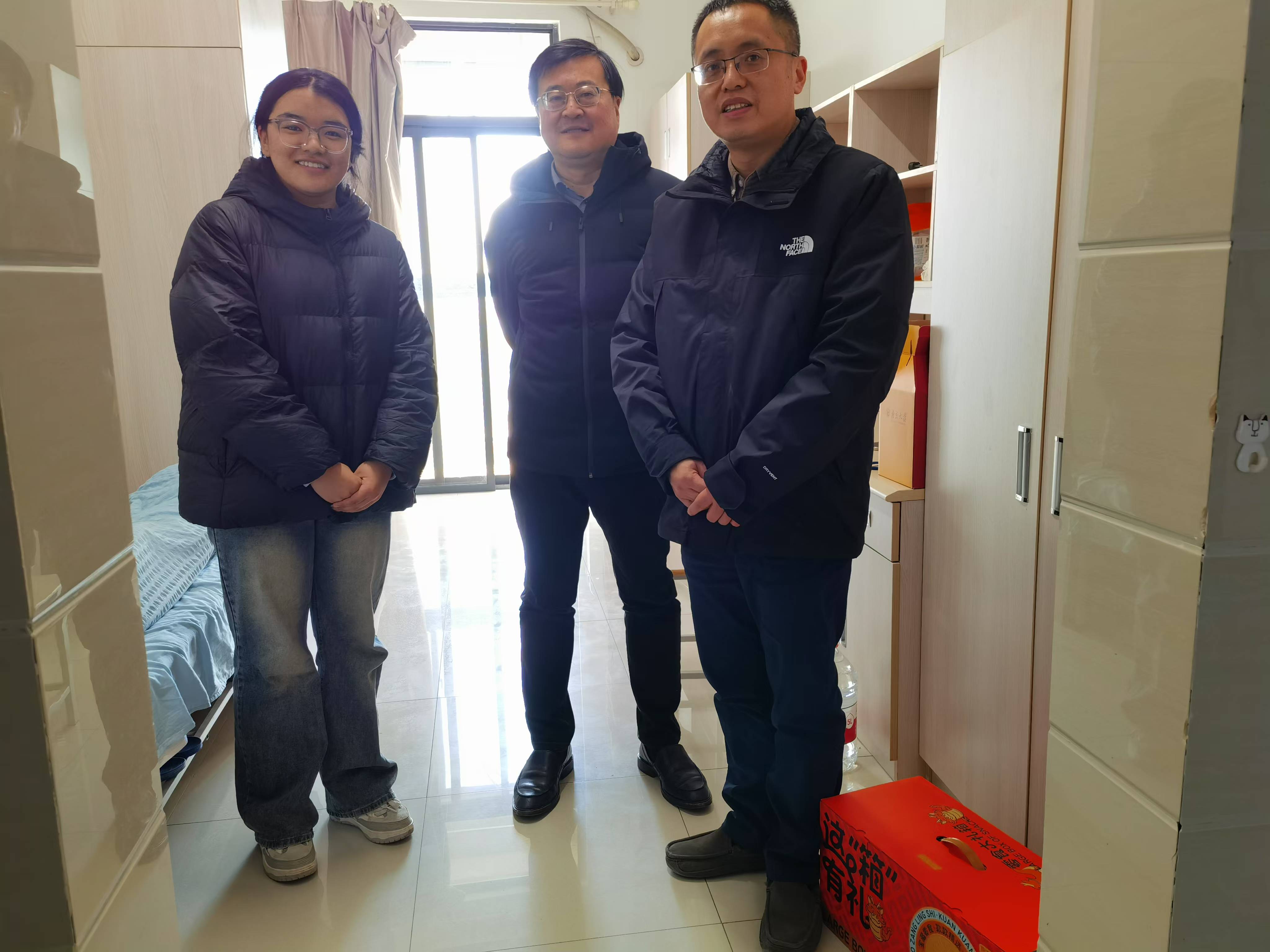 2025年寒假,MK体育有5位研究生、1位本科生同学留校赶写论文、准备考公。1月27日下午,历史公司党委书记赵清、经理梁晨、党委副书记任玲玲,前往员工宿舍探望留校过春节的同学。