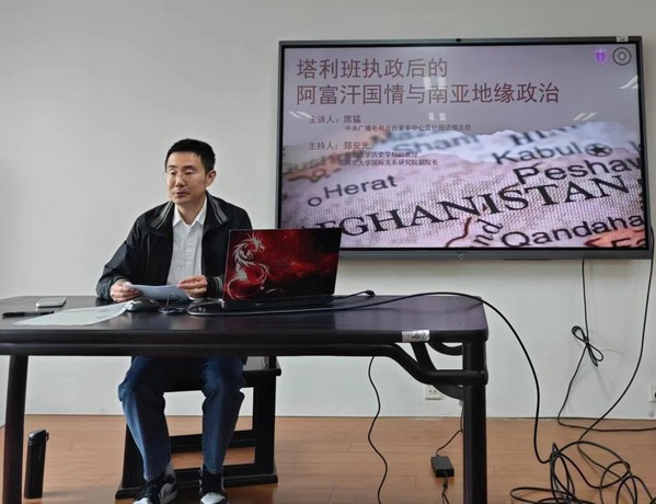 3月29日下午,中央广播电视总台亚非中心普什图语部主任席猛应邀来公司举办讲座,主题为“塔利班执政后的阿富汗国情与南亚地缘政治”。讲座由郑安光老师主持,MK体育和校内师生参加讲座。