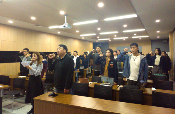 最后,王恩惠带领参会全体党员重温入党誓词。希望全体党员同学能够在新的学习阶段,始终坚持正确的思想引领,树立远大理想,以党员身份严格要求自己,做好先锋模范作用。