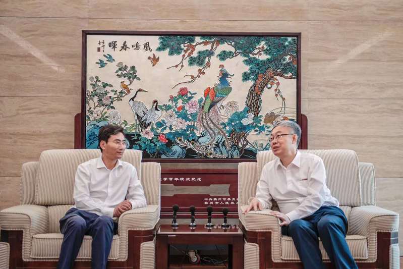 2020年6月16日捐赠仪式前鲍风林先生与吕建董事长座谈