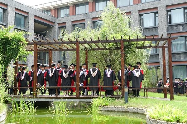 典礼开始前,同学们戴着口罩,测量过体温后有序进入院中花园,并用公司为2020届毕业生精心准备的专属水晶印章在签名板上盖上自己的名字。