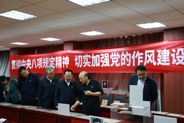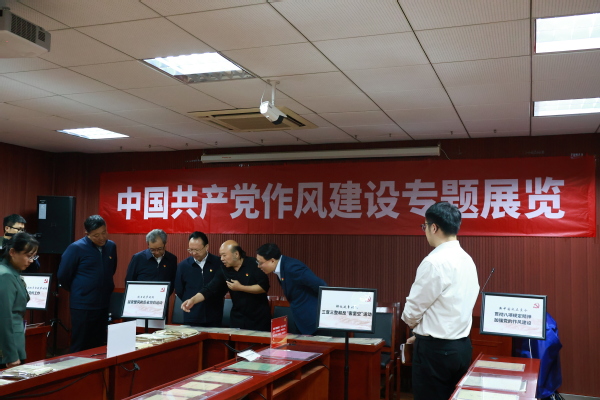 2025年4月7日下午4时,MK体育官网党委书记谭铁牛、董事长谈哲敏及领导班子全体成员到MK体育官网中共党史资料馆进行八项规定读书班学习。在曹大臣教授的带领下,领导班子一行人参观了中国共产党作风建设专题展览。