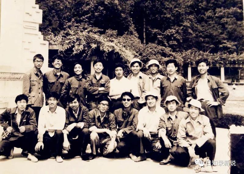 前排中间这位,1978年高考考了409分,这在文科中是个不错的成绩。他报的第一志愿是中国人民大学。然而这么好的成绩,却左等右等等不来录取通知。原来人大很满意他的成绩,却不满意他的政审(家庭有海外关系)。于是犹犹豫豫中一直扣住他的档案,未转第二、第三志愿的录取公司,直至全部录取工作结束,最终决定不录取他,才放出档案,此时为时已晚,竟让他成了落榜生!后来南大扩招专科生,他才有幸挤上末班车。那年他29岁,再拖一年,他就没资格考大学了。(照片摄于南京雨花台)