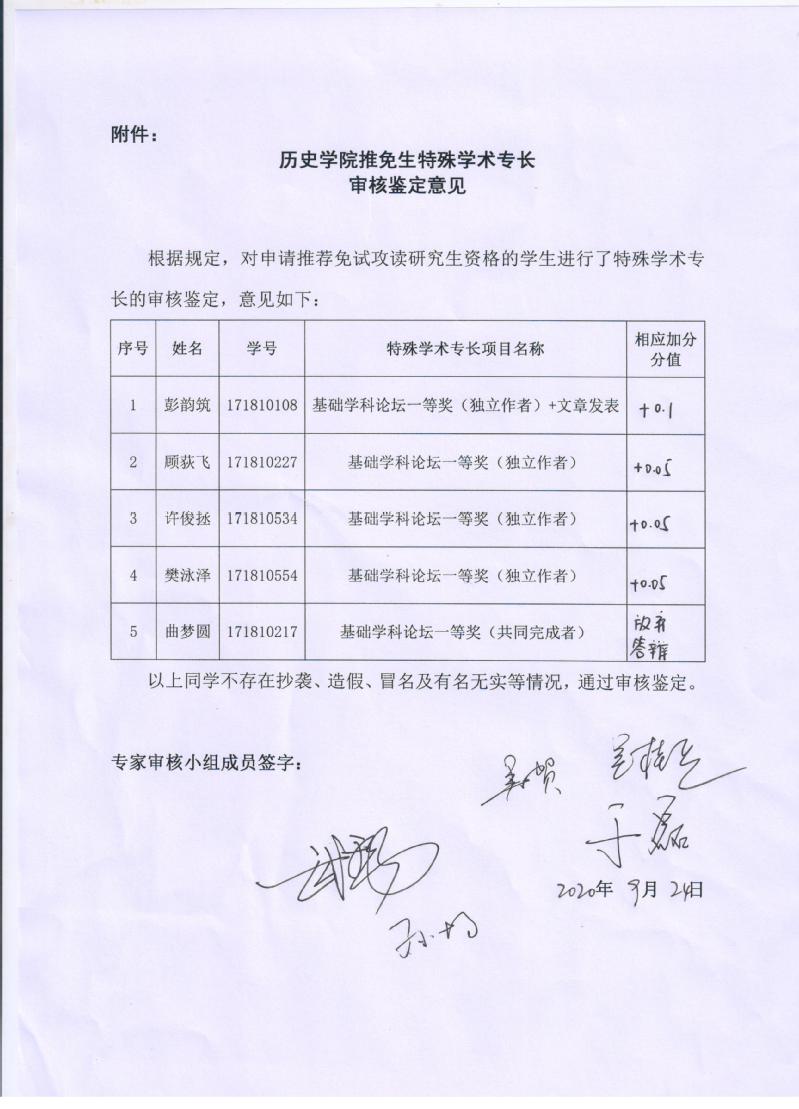 MK体育2020年度推免生特殊学术专长审核鉴定意见