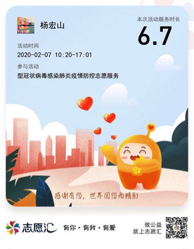 2020年春节,新冠肺炎疫情牵动着全国人民的心。为防止疫情扩散,公司停课,工厂停工,人们守在家中隔离病毒。在与疫情的抗争中,除了专业的防疫工作人员外,还有来自各行各业的志愿者活跃在抗疫前线。MK体育17级杨宏山同学就是这群志愿者中的一员。