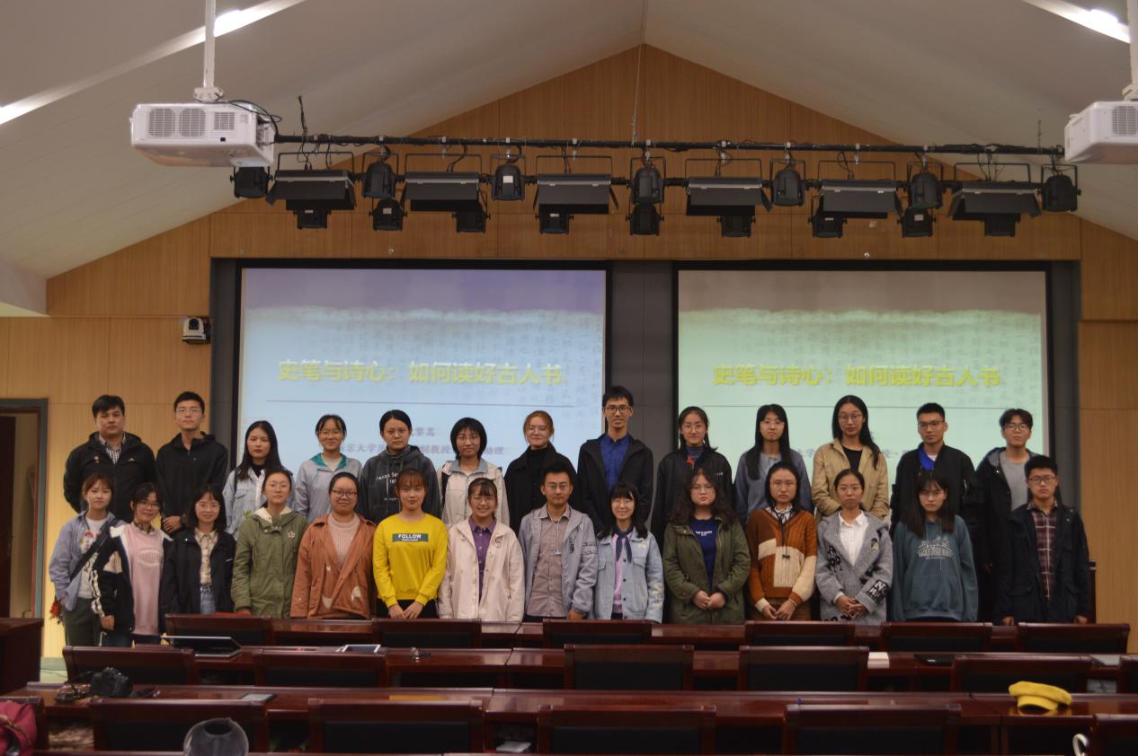 武黎嵩老师以"史笔与诗心"为主题,结合个人经历、历史哲学、历史学责任等,分"二义"、"志行相矫"、"化史入诗"、"忠恕立心"四个篇章,向同学们勾勒了历史学的基本面貌,并兼谈历史与文学之间的关系。在讲座后,武老师还向同学们提出一些学习历史学的建议,希望同学们多读原著,并从谱系之中了解历史与理论,更要在学习历史的途中扩大自己的"心量",引发了同学们进一步学习历史学的浓厚兴趣。