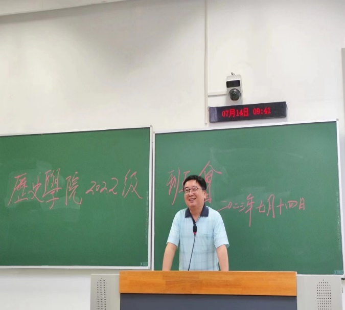 MK体育经理张生老师追昔抚今,回顾MK体育官网及MK体育120周年厚重的历史,对MK体育取得的重要成绩和为社会做出的主要贡献如数家珍:第一是学科根脉完整,发展完备,参与创建中国近代历史学科体系;第二是注重立德树人工作,为社会输送大量中坚人才;第三是为服务社会,为国家和社会发展献计献策。张老师感慨万千:“MK体育源远流长,加入MK体育是光荣的!”。他激励22级本科生同学思考来MK体育“学什么”“为什么学”,并规划好下一步的学习生活。多读书、多结交良师益友,是张老师对同学们的殷切期盼。