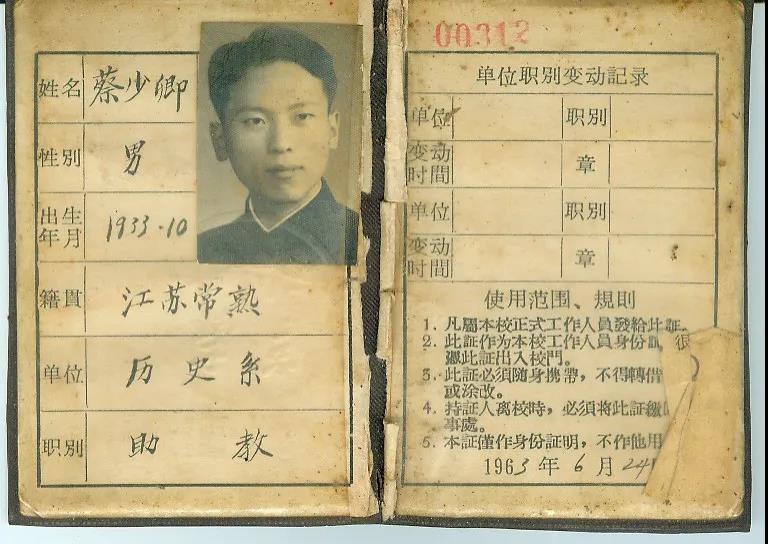 蔡先生在北大的工作证