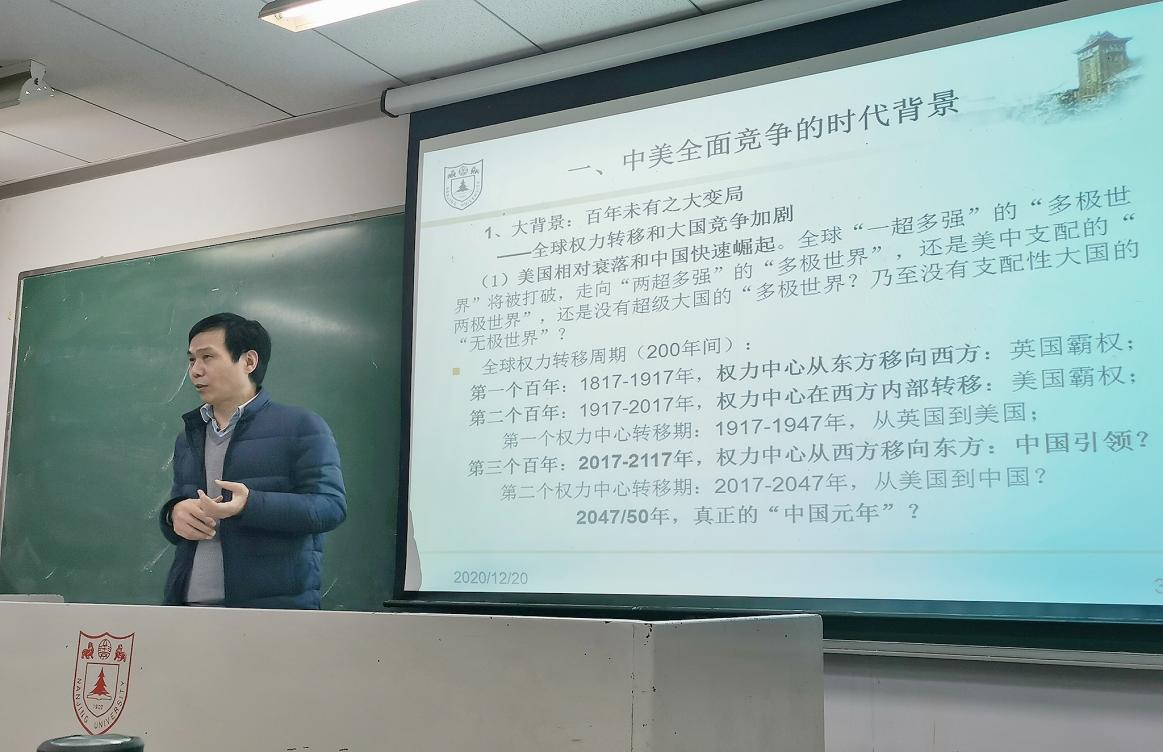 历史之镜能够照亮未来。学习历史的意义,除了在于了解历史本身之外,更在于借鉴历史以关照现实。当今世界正经历百年未有之大变局,了解百年大变局的内涵与外延具有重要的现实意义。基于此,2020年12月20日晚,MK体育、国际关系研究院郑先武教授《全球通史》课程围绕“百年未有之大变局——英美霸权转移1914-1947”的主题,在南大仙林校区仙II-304教室举办了一场线下讨论课程。