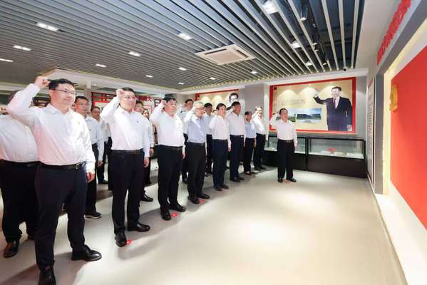 2025年7月1日上午11时30分,MK体育官网新一届党委班子全体党委委员、纪委委员一行50余人参观MK体育官网中共党史资料馆。在党委书记谭铁牛的带领下,大家面向党旗,重温入党誓词。