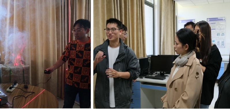 13点30分,同学们去往大气科学公司流体实验室,实验室的学长热情接待,通过丁达尔效应湍流涡旋演示、转盘傅科摆、浅水重力波演示实验,展示了大气微观、宏观的可视变化,并在解说中与生活实际相结合,揭开了大气的神秘面纱,激发考古学同学们对大气科学的兴趣。