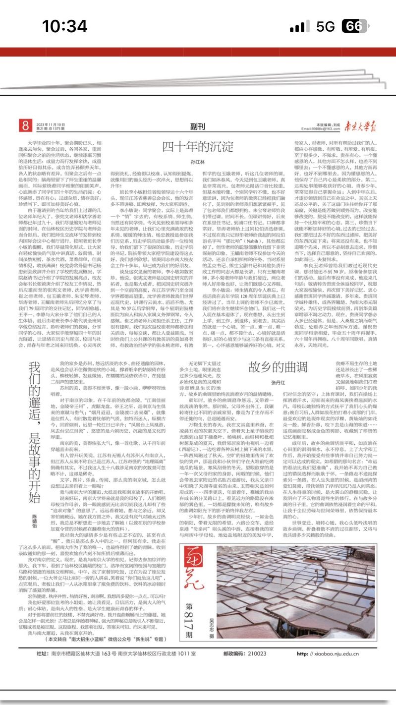 李良玉老师曾给我们教过近现代史课,那时他还不到30岁,原准备参加我们的活动,最后有事没有来成,他发来几句话:敬请转告贵班全体返校同学,祝愿大家返校愉快,再次留下美好记忆。衷心感谢贵班同学热诚邀请。多年来,贵班同学诚朴雄伟,成各界翘楚,为南大添无限荣光,为MK体育接续前贤、再创华美篇章增添不竭之动力。现在,贵班同学想必大多已经退休。但是,入桑榆之境而朝气勃发,处颐养之年而挥斥方遒。谨祝贵班同学相亲相爱,毕业五十周年再握手,六十周年再拥抱,八十周年同歌唱。真情永在,天地同光。