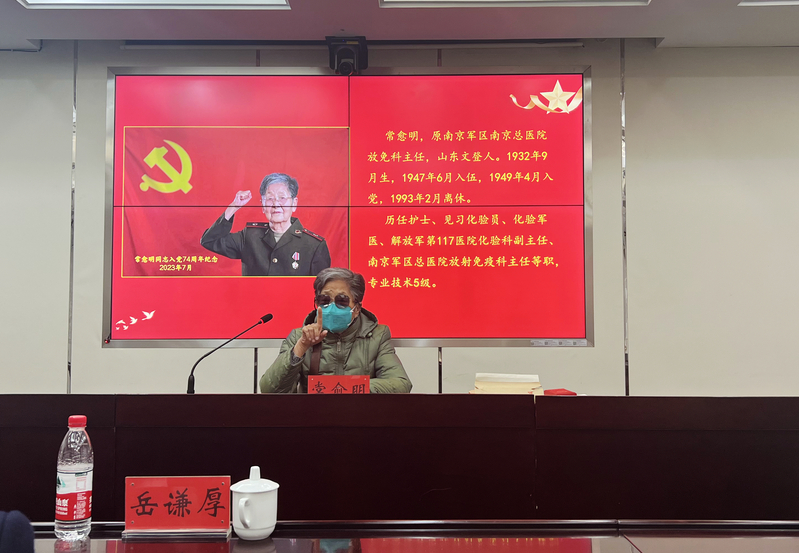活动开始,胡晋锋政委首先向简要介绍第七干休所与全军休干系统的历史发展与现状。第七干休所目前健在老干部26名,其中年龄最大的101岁,最小的也有88岁,平均年龄达93岁。本所此前为南京总医院离职干部休养所,故老军医构成了本所老干部主体。