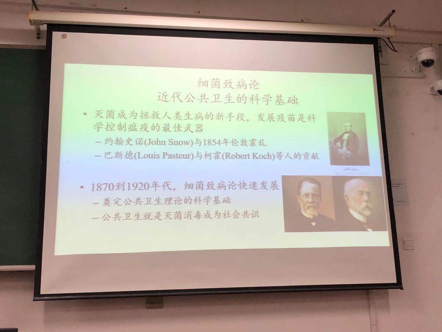 刘士永教授在回顾先前提到的“瘴气论”后,又详细介绍近代公共卫生的科学基础——细菌致病论,并通过英国医生约翰·斯诺(John Snow)、德国微生物学家和化学家巴斯德(Louis Pasteur)、德国医学家科赫(Robert Koch)等人的贡献,指出灭菌和疫苗功不可没。同时,刘士永教授也强调,1870到1920年代,细菌致病论快速发展,而这一时间段,恰逢我们中国的晚清民初,所以刘士永教授又带我们跨越欧亚大陆,从西欧来到了远东。