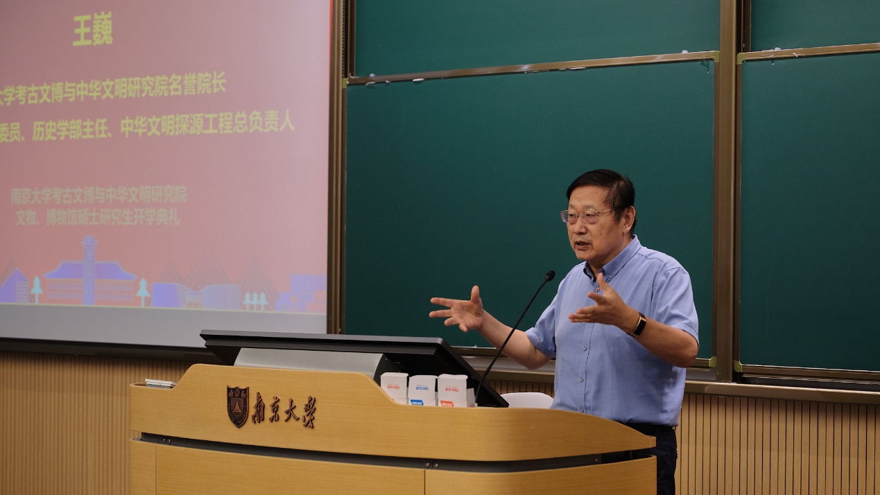 在新生代表代文泽的献词之后,MK体育官网考古文博与中华文明研究院名誉经理、中国社会科公司学部委员、一级教授、中华文明探源工程首席专家王巍教授作总结发言。王院士指出,考古与文博工作是中华文明研究的重要组成部分,研究生们肩负着弘扬中华文化的重要使命。他强调,研究院将为员工提供国际一流的学术平台和学习资源,期望同学们珍惜学习时光,潜心研究,成为未来考古学界的中坚力量。