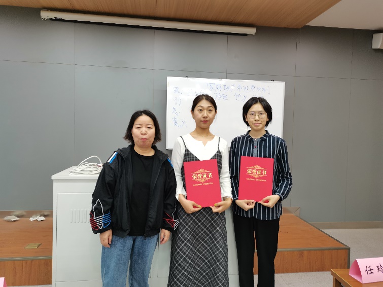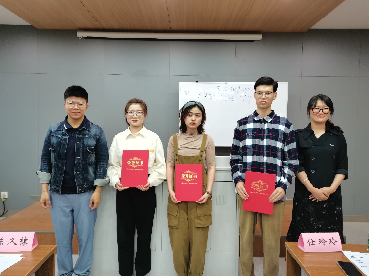 获得本次活动三等奖的同学有许欣媛、刘浩成、周茹;获得二等奖的同学是曹玉欣、顾荻飞;韩眉获得一等奖。在热烈的掌声中,模拟求职大赛落下帷幕。各位评委老师为参赛选手颁发获奖证书,选手及各位评委移至MK体育前坪合影留念。