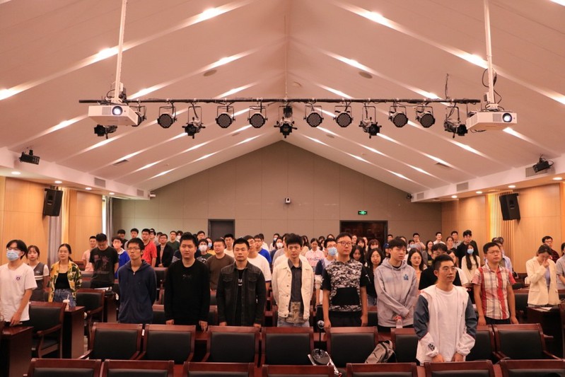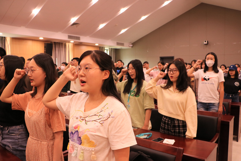 在对2022年校优秀博士生学位论文作者及指导老师进行表彰后,研究生全体新生进行宣誓。