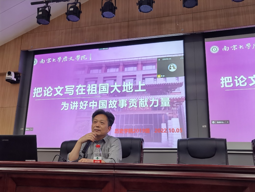 张学锋老师回顾求学教书40年的历程,他认为在本科阶段是知识积累的阶段,创新在这一阶段并不是最重要的。大家在本科阶段要多读多看,有意识去搜集材料,这样才能筑牢论文写作的基础。张老师告诉大家,学术研究要常思常新,不能三天打鱼两天晒网,一个研究课题,如果一个星期不思考,思路就断了。同时,毕业论文的写作是对大家语言文字功底与表达能力的一次考验。通过学习与思考,把自己的想法用语言文字清晰地表达出来,是我们无论从事什么行业都需要的能力。
