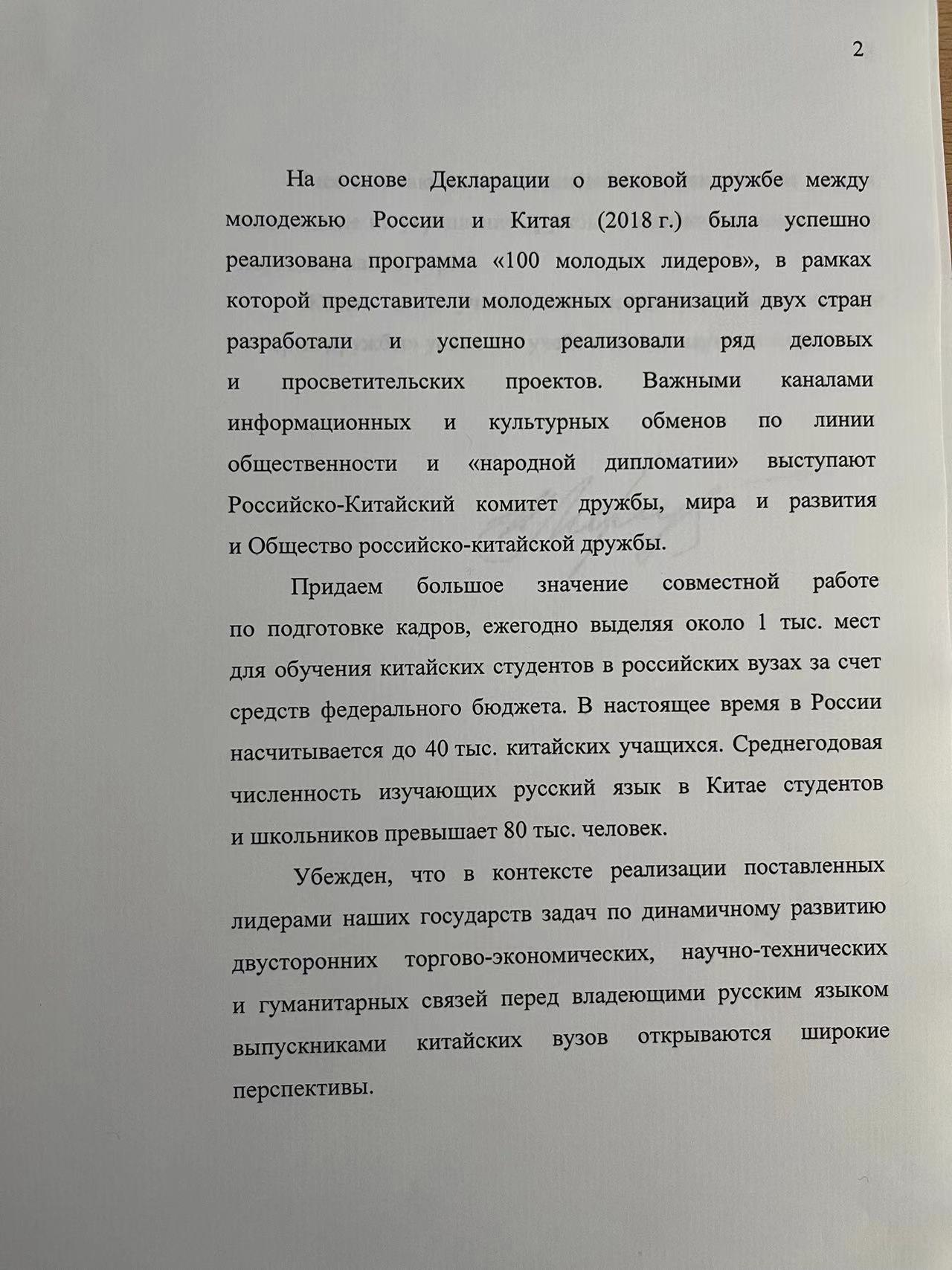 The Ambassador described the state of cooperation between the two countries in the fields of education, culture and youth exchanges since the beginning of the new century. He was confident that with the implementation of the goals set by the leaders of the two countries regarding the active development of bilateral trade, economic, scientific and technological and humanistic ties, Russian-speaking graduates from Chinese universities will have great prospects.